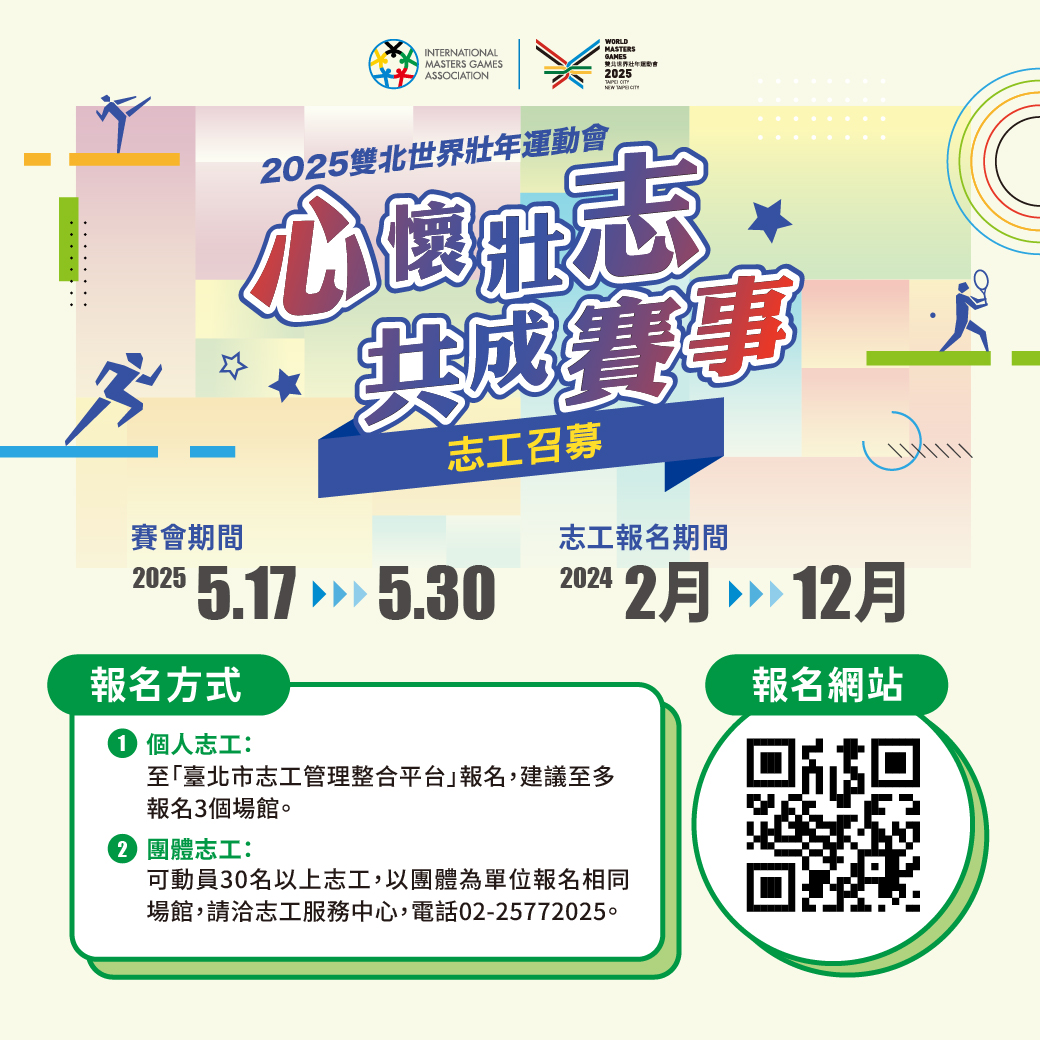 「心懷壯志 共成賽事」—2025雙北世界壯年運動會志工召募開跑!