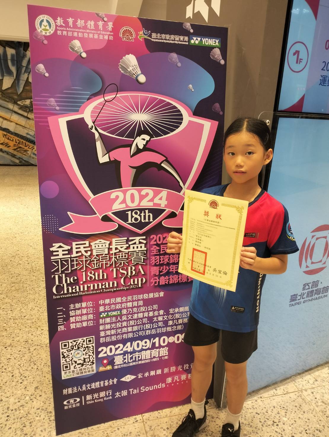 狂賀本校羽球隊蔡昀珊同學參加2024年第18屆全民會長盃國際羽球錦標賽暨青少年羽球分齡錦標賽