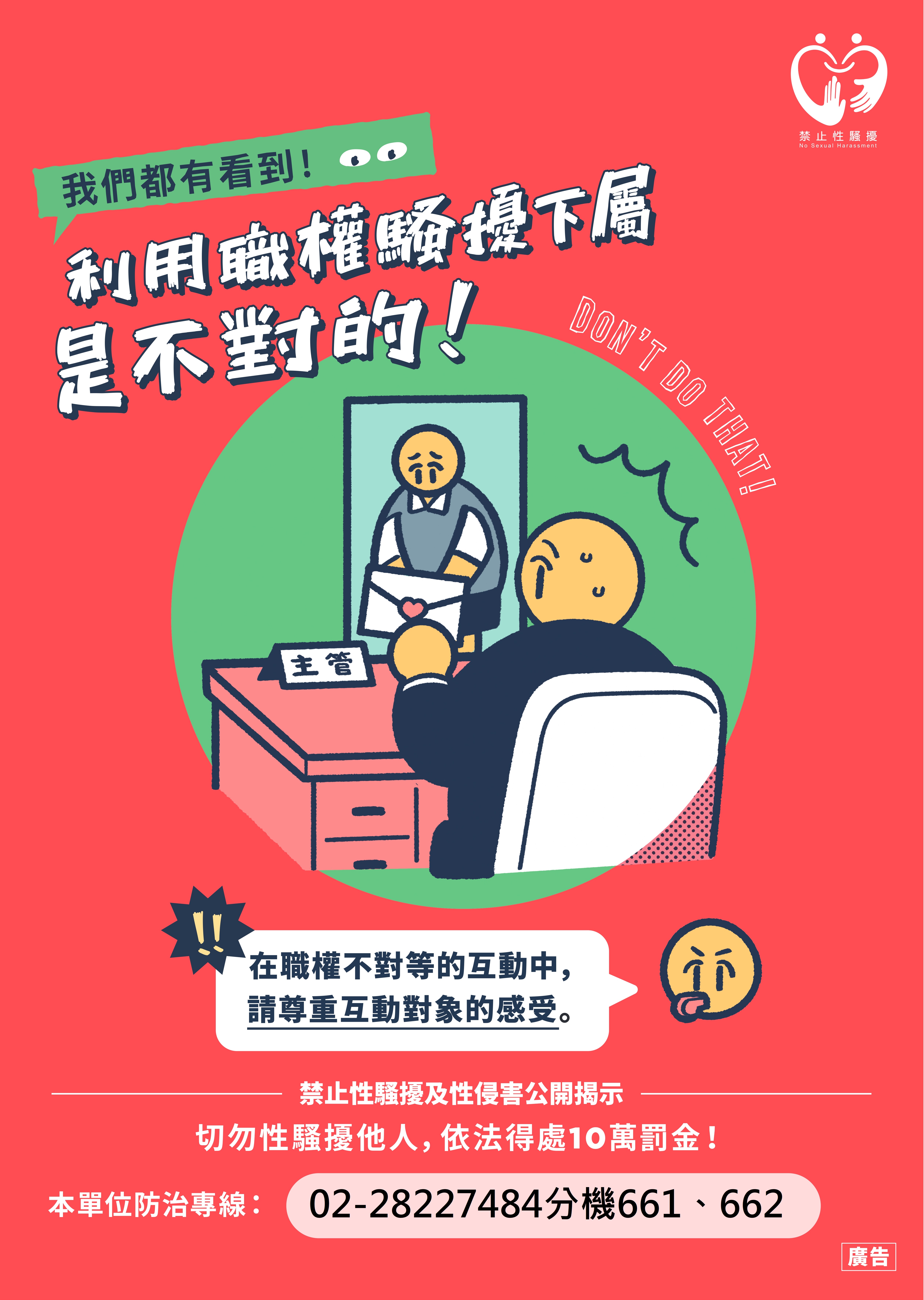 另查本府社會局官網設有性騷擾防治專區(網址:https://reurl.cc/LW2E8x),本府勞動局官網亦設有性別平等工作法修法—職場性騷擾防治專區(網址:https://reurl.cc/QR2My0)及提供外部諮詢專線(1999分機7036),請自行參考利用。
