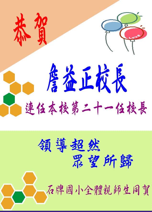 恭賀 詹益正校長 榮膺 石牌國小第21任校長