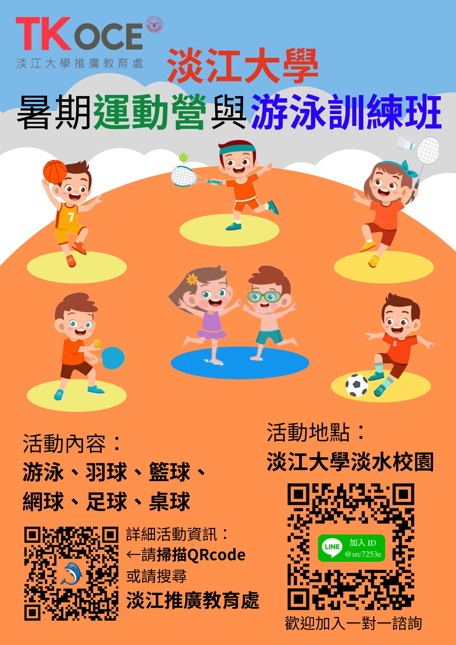 一、擬於本校淡水校園開設旨揭訓練班及運動營,運動營包含 足球、網球、桌球、籃球營、羽球等5項課程。