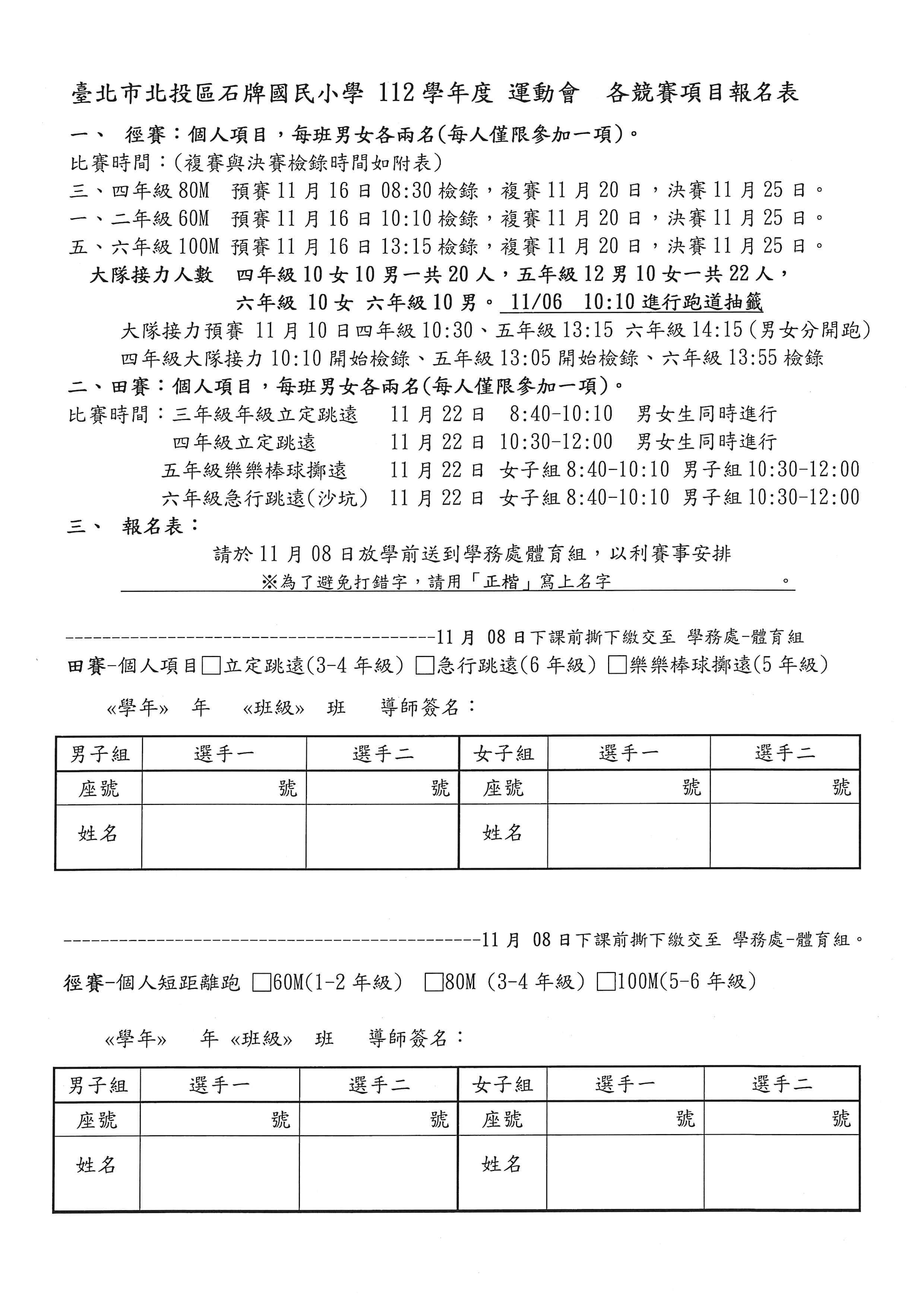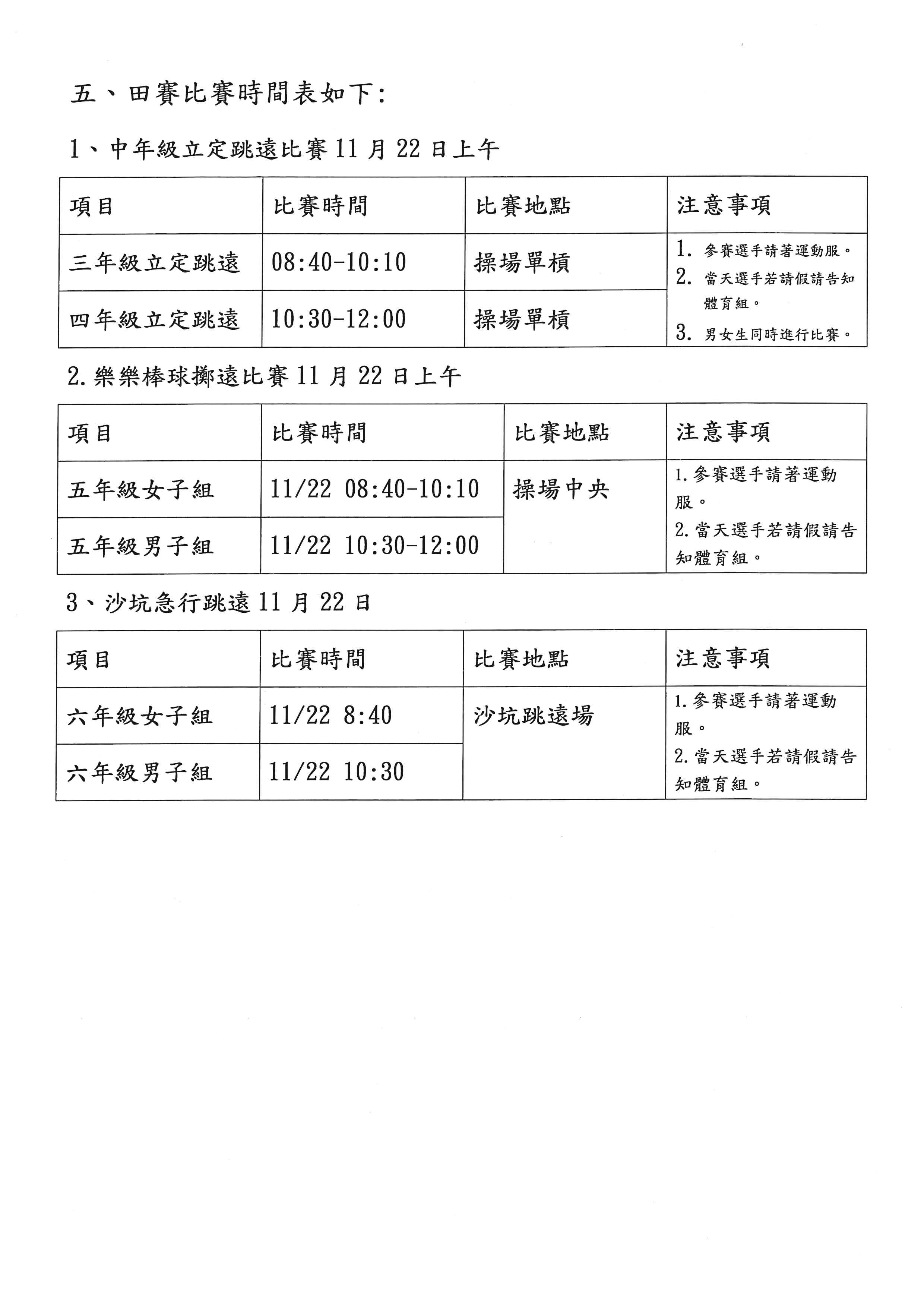 比賽當天穿著運動服裝 運動鞋 在比賽時間到指定場地集合點名