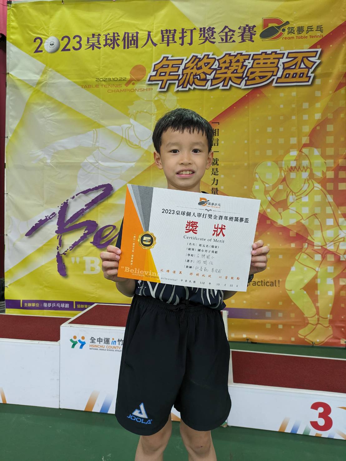 狂賀本校桌球隊學生游開佐參加2023年築夢盃桌球個人單打獎金賽獲國小男子勇組第五名