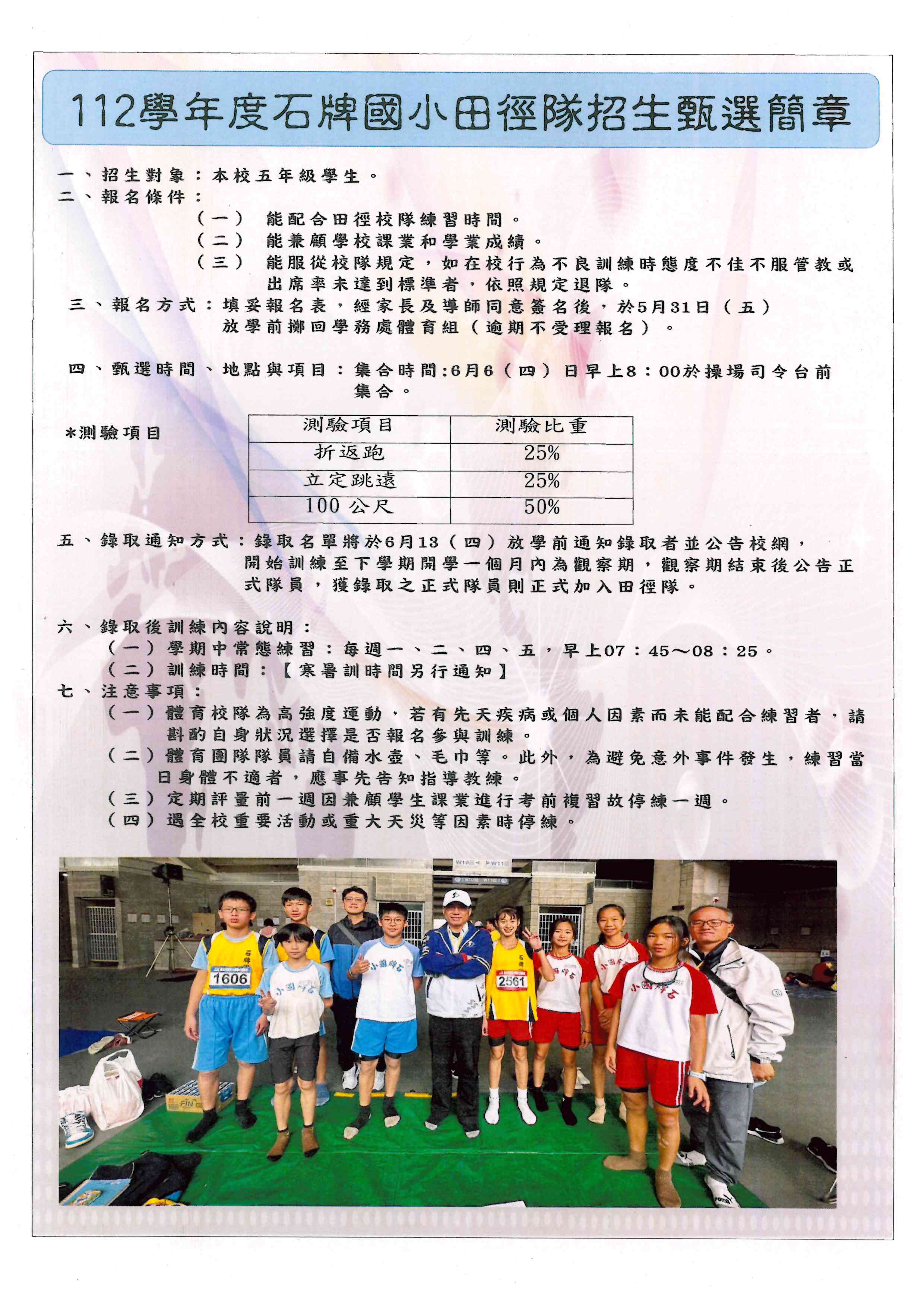式隊員,獲錄取之正式隊員則正式加入田徑隊。
