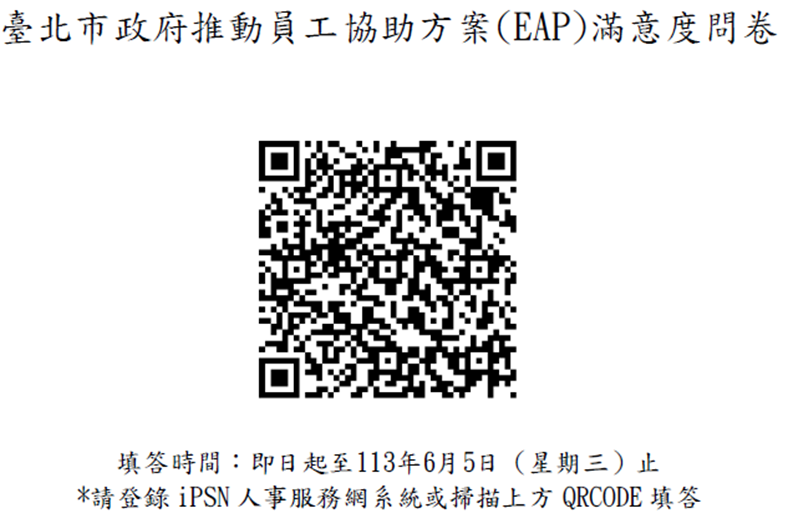 三、檢附「臺北市政府推動員工協助方案(EAP)滿意度問卷」QRCODE。