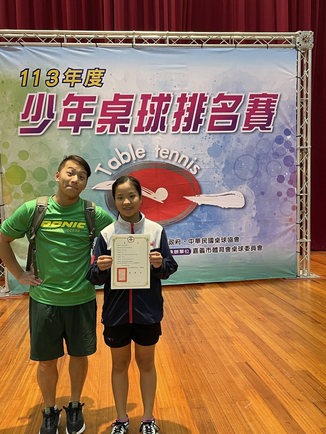 狂賀本校桌球隊吳宇甄同學 參加113年度少年桌球排名賽 獲選13歲組少年國手