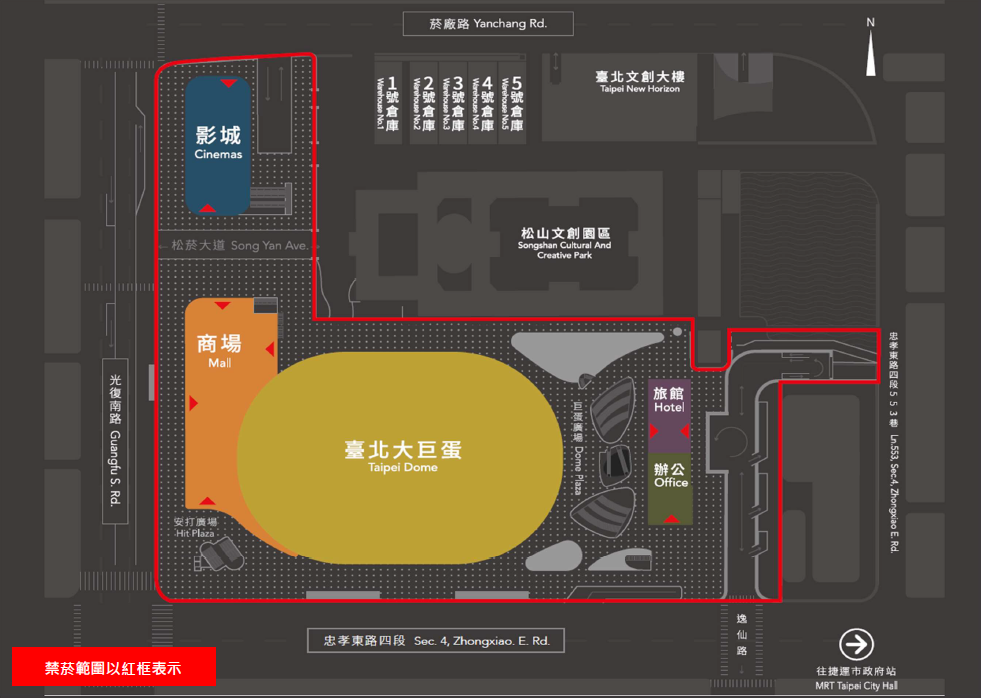 「臺北大巨蛋園區」(臺北市信義區忠孝東路4段515號)所屬之室外場所,