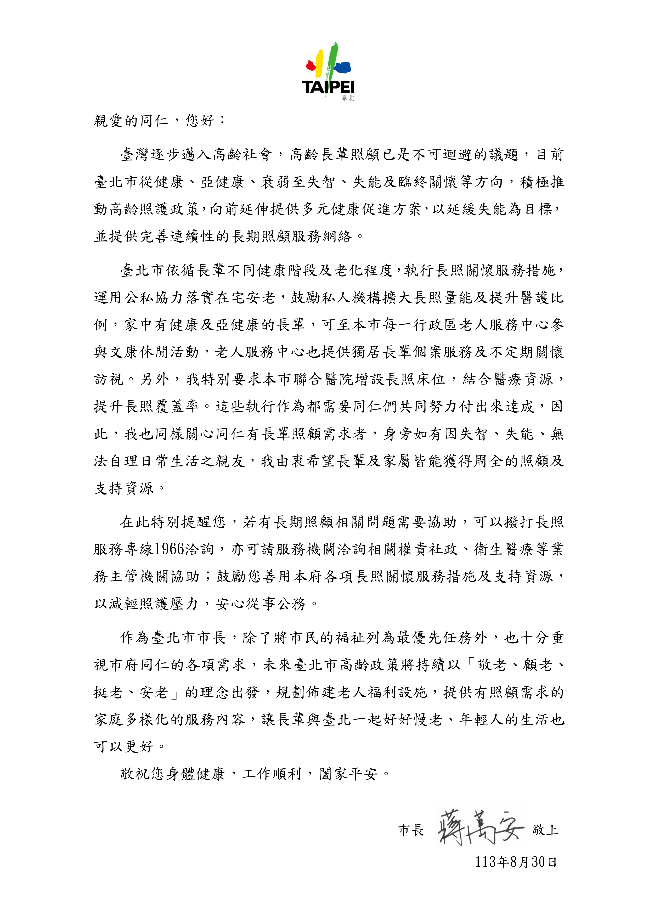 另可參閱:臺北市政府長期照護關懷服務措施相關資料