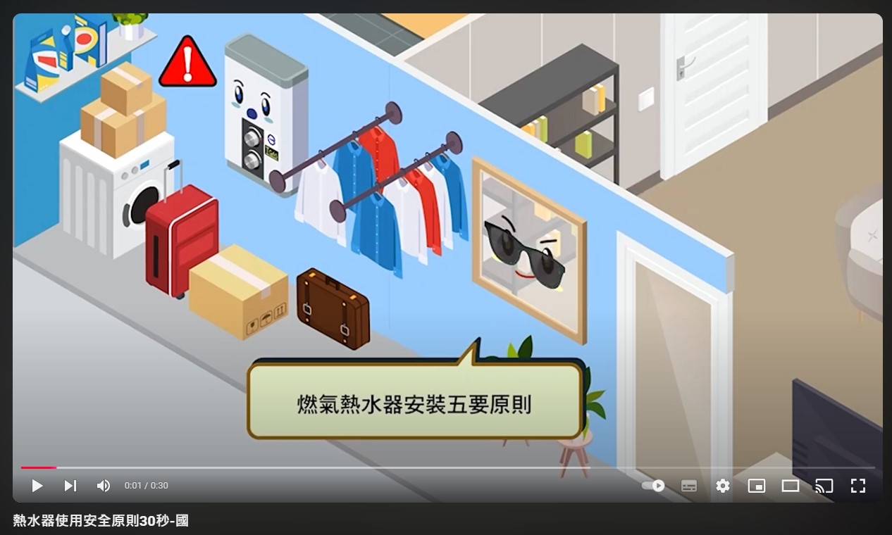 【防災宣導影片-熱水器使用安全原則(國語30秒)】