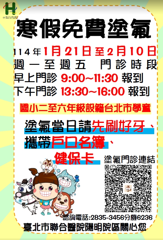 一、臺北市立聯合醫院寒假免費塗氟活動