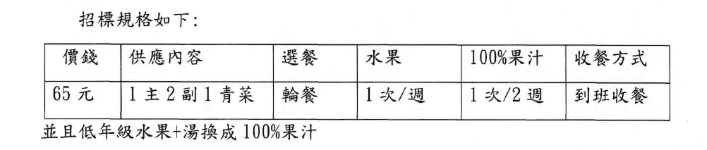 因應物價上漲,經全校問卷調查並由午餐供應委員會後決議後,114學年度營養午餐規劃調至每餐65元,並同步調整餐點供應內容及服務方式。