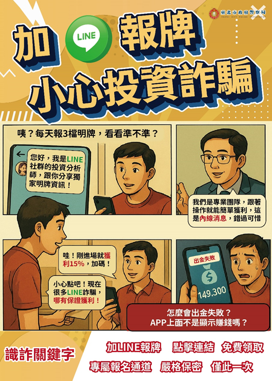 (二)詐騙手法:加LINE報牌投資詐騙及網詐通報查詢網