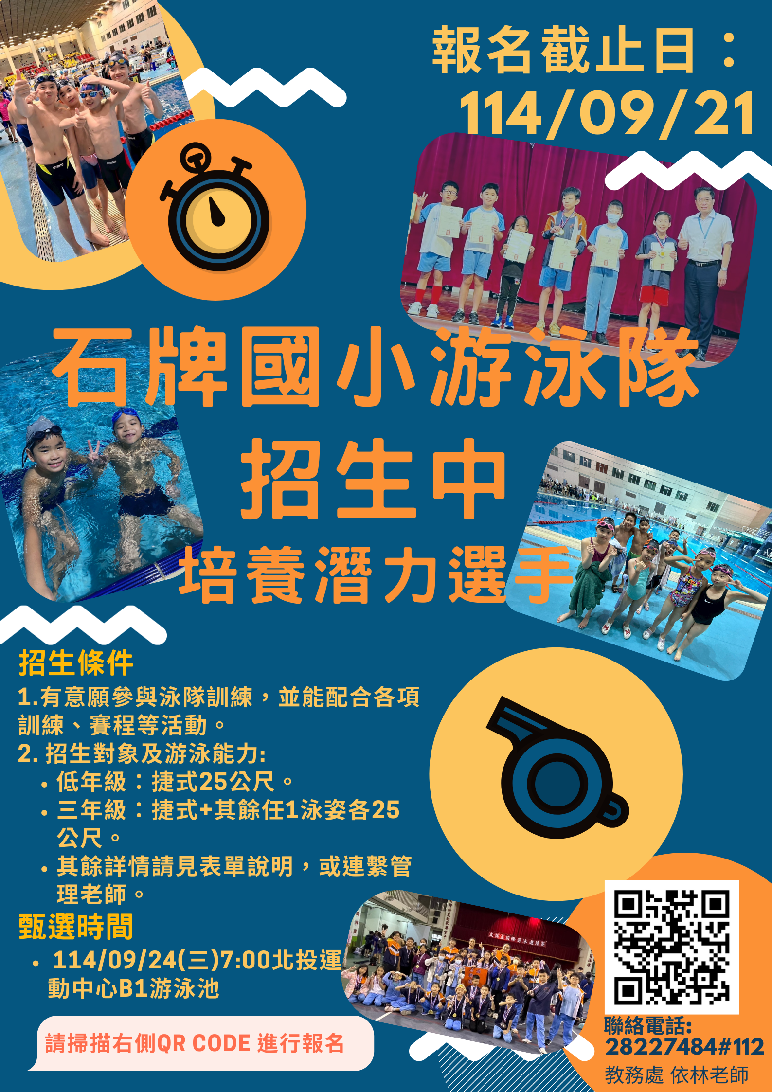 七、甄選時間: 114/09/24(三)7:00北投運動中心B1游泳池