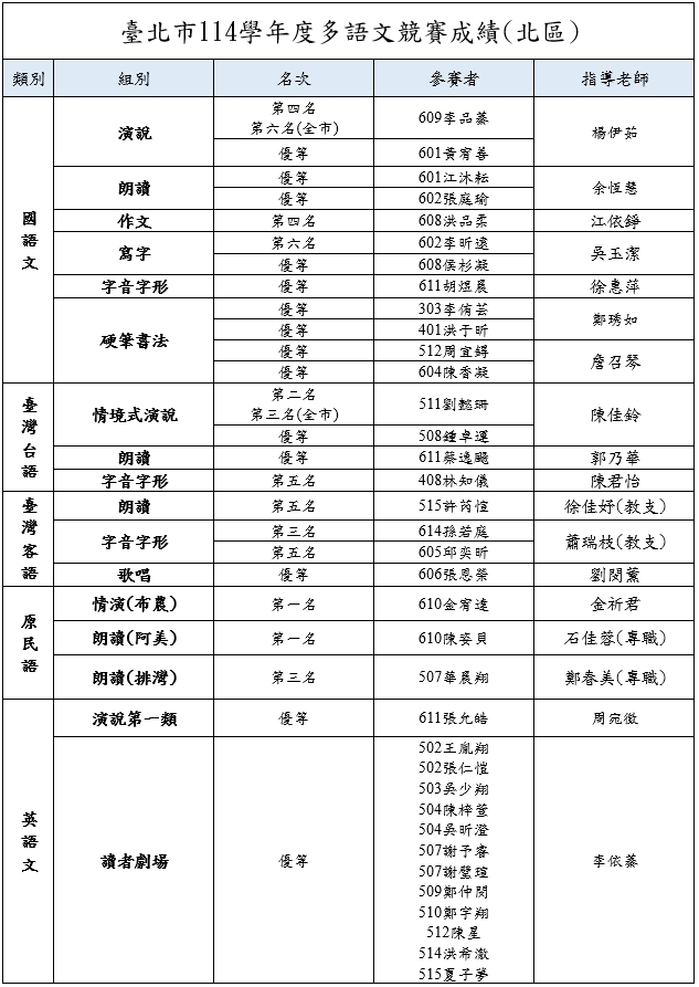 感謝指導老師們在學期中、寒暑假不間斷的指導,也恭喜獲獎的小朋友^^